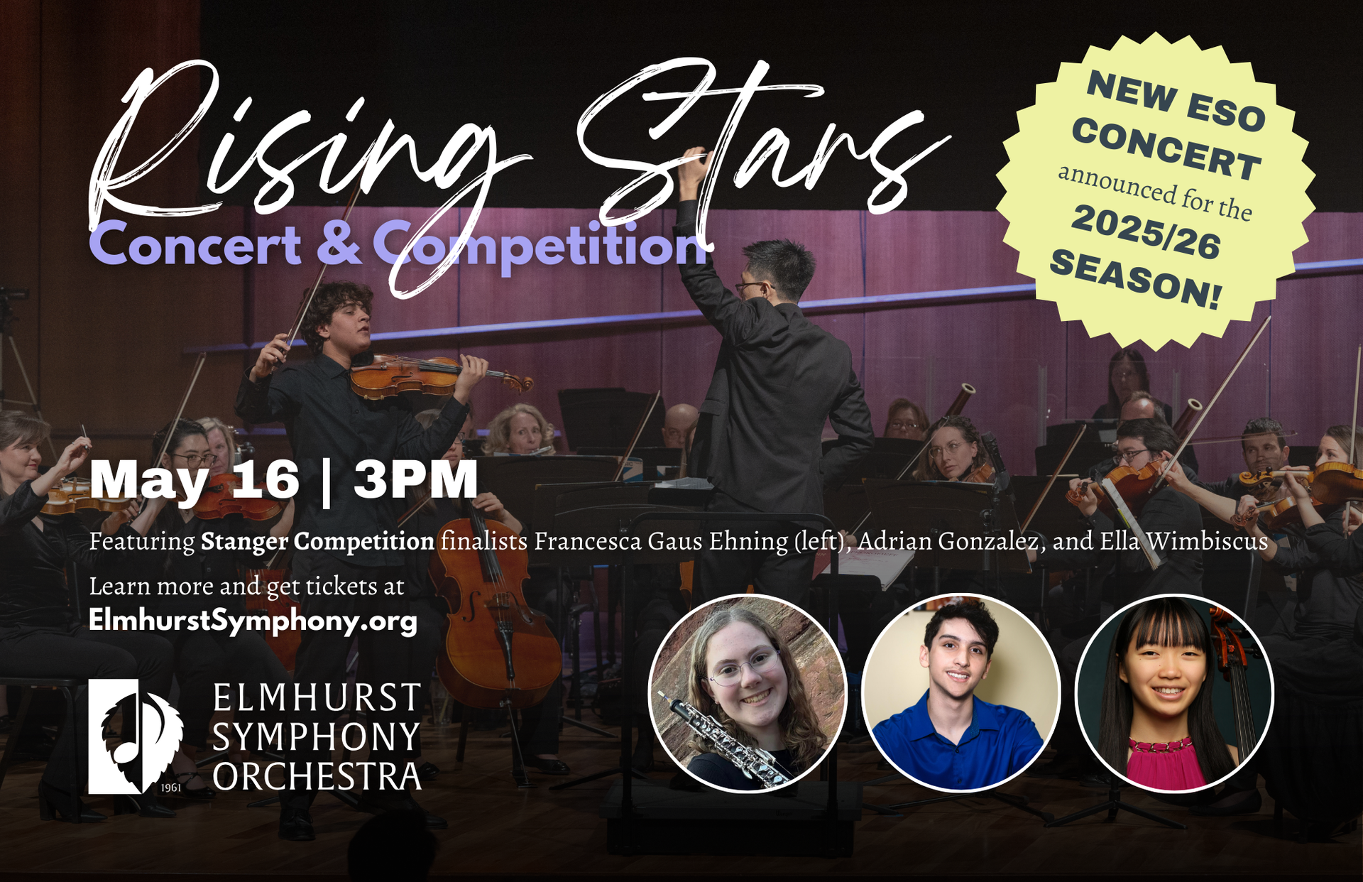 The Elmhurst Symphony Orchestra relies on generous friends and donors as it continues to pursue its mission to entertain and enrich our community through live orchestral music. Please consider making a tax-deductible contribution today. Learn more.